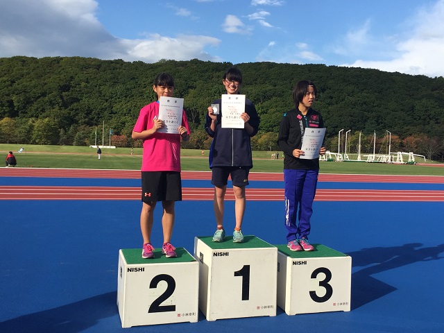 くもり空から秋晴れへと移り変わり、紅葉もほのかに見えはじめる、涼しげな会場コンデション。色鮮やかな赤茶色の上に引かれた白線は日差しに照らされ、くっきりと浮かび上がり全天候トラックの路面も良好な状態となった。今シーズン苫小牧最後の選手権という事もあり、出場選手皆が今年の集大成となるべく走りを目指す中、エントリーした14人、後におのおのが入賞や優勝、日頃の練習の成果を発揮するなど、とても素晴らしく華やかな光景を目にする大会となりました。